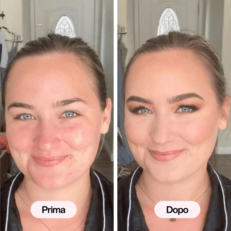 Uniforma l’incarnato e riduce visibilmente i rossori.