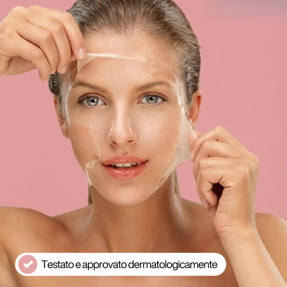 La formula peel-off si rimuove facilmente in un unico gesto, lasciando la pelle fresca, liscia e rivitalizzata.